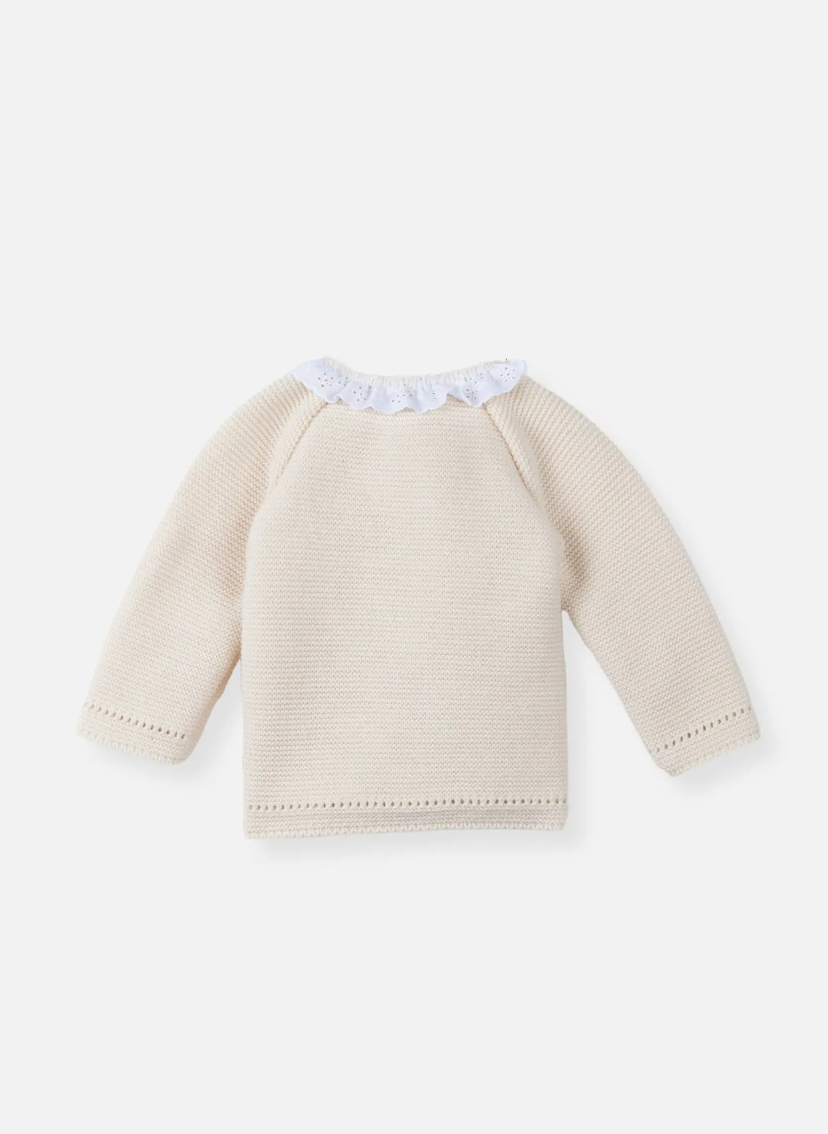 Cette brassière pour bébé, tricotée avec soin en France, allie confort et raffinement. Son col délicatement brodé lui confère une touche d’élégance unique, idéale pour les grandes occasions comme pour le quotidien.