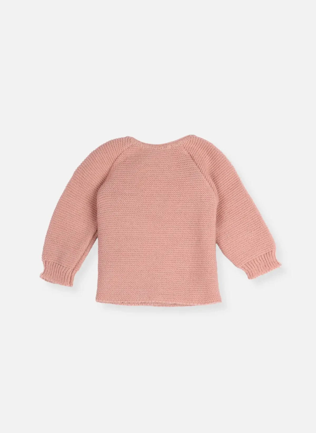 Brassière bébé tricotée en France, quatre boutons latéraux et une ravissante broderie cerise. Fraîcheur, douceur et charme authentique.